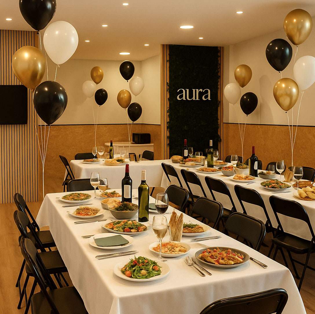 En Aura Eventos encontrarás el lugar perfecto para fiestas privadas en León: elegante, versátil y totalmente equipado para que tu evento sea un éxito. Cumpleaños, bautizos, despedidas, baby showers, comuniones o reuniones familiares… Sea cual sea la ocasión, para que disfrutes sin preocuparte por nada. Contamos con todas las comodidades, un ambiente acogedor y un diseño que enamora. Porque cuando celebras en Aura, cada momento se convierte en un recuerdo inolvidable.